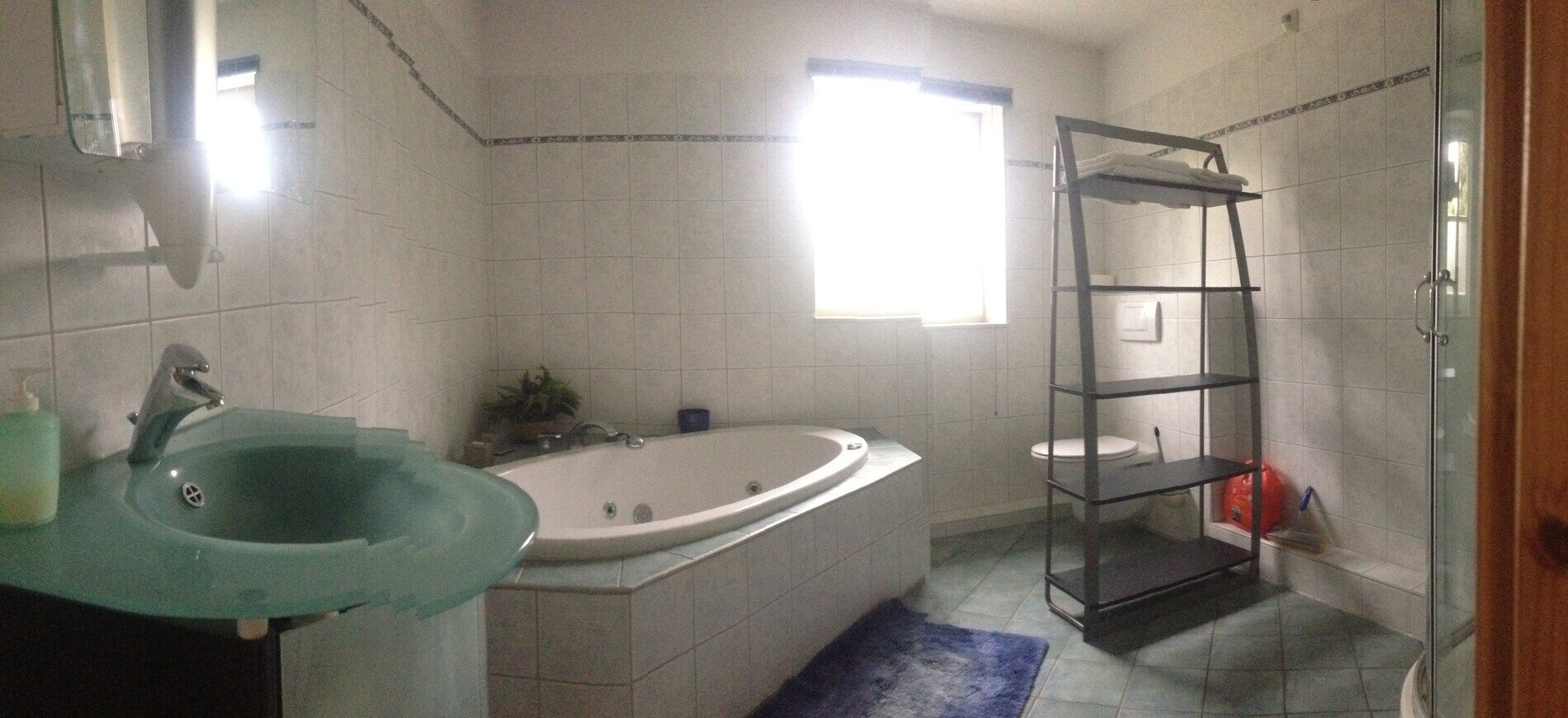 - Bad mit Whirlpool, Dusche/Regendusche, WC, Waschtischanlage, Fön