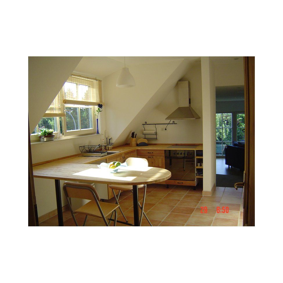 Haus Einfeld - im OG wurde 2005/06 komplett neu ausgebaut. Sie ist allergikerfreundlich eingerichtet, da z.B. die Bodenbeläge überwiegend aus Fliesen und Laminat bestehen. Allergikergeeignete Bettwäsche ist vorhanden. Für die extrem heißen Tage steht bei Bedarf eine mobile Klimaanlage zur Verfügung. Ausgerichtet ist die Ferienwohnung für 2 Personen. Da die Wohnlandschaft als weitere Schlafmöglichkeit dienen kann, können bis 4 Personen die Ferienwohnung nutzen. Weiter kann ein Schlafzimmer mit 2 Betten dazugebucht werden.