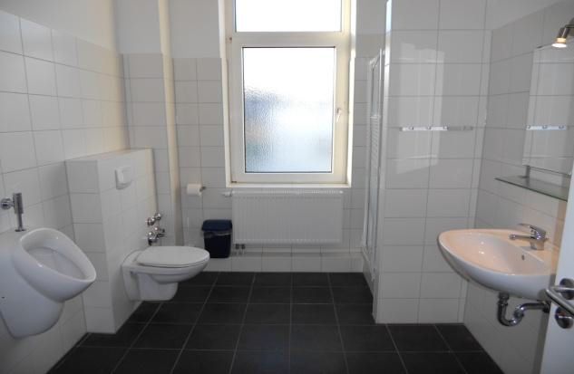 ... eigene Kompaktküche mit Herd, Kombiofen, Kühlschrank mit Gefrierfach, großes Gemeinschafts Duschbad mit WC+Urinal,