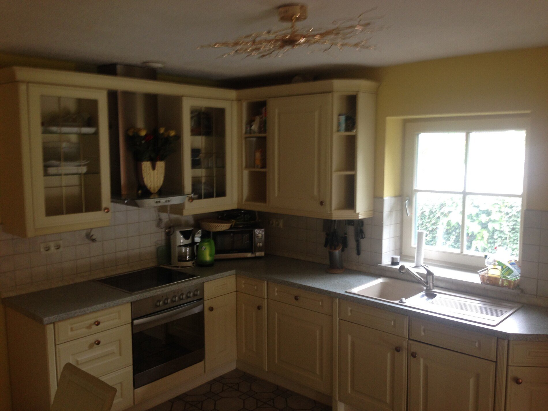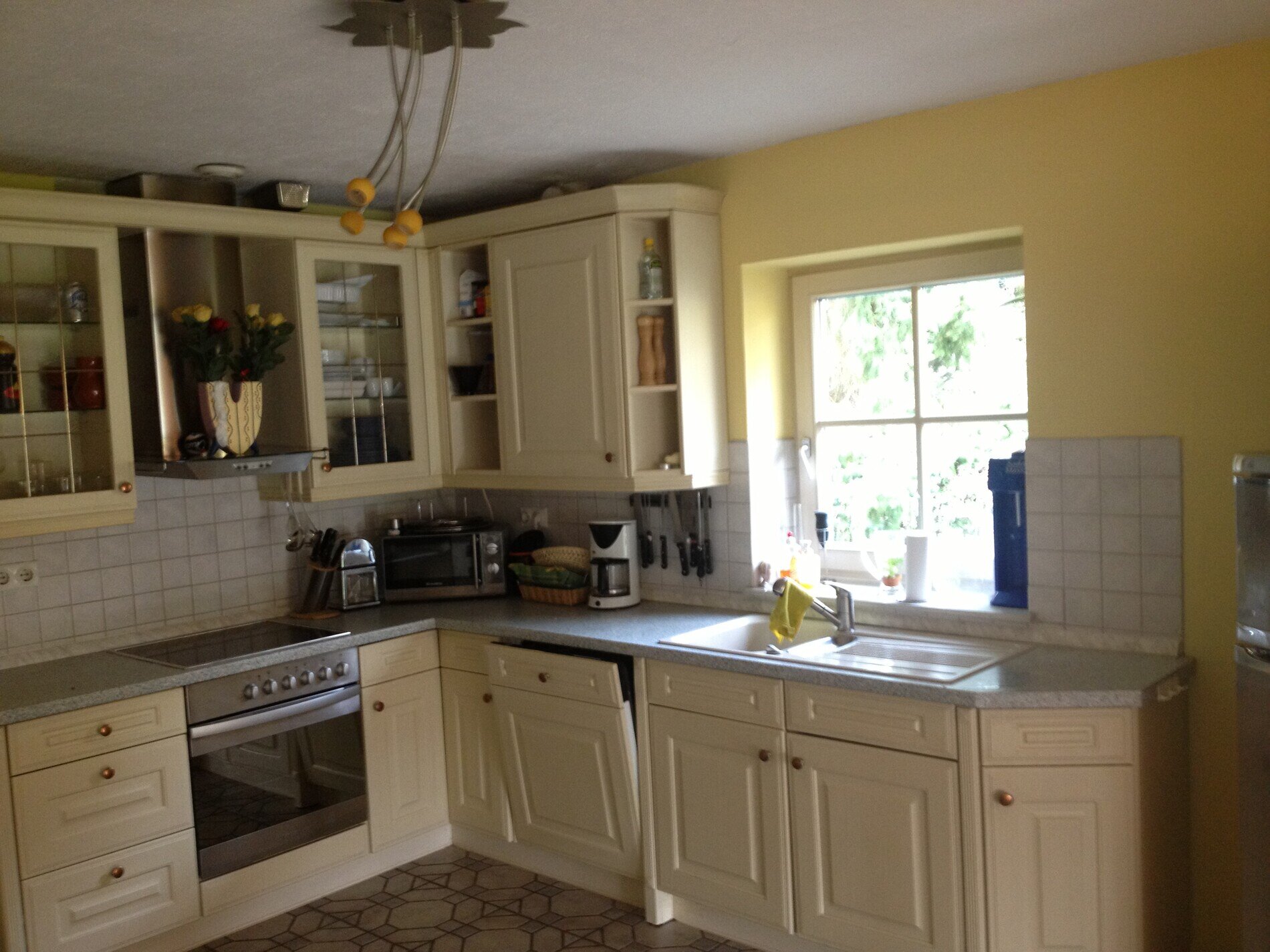 - offene Einbauküche mit Geschirrspüler, Cerankochfeld, Kaffeemaschine, Mikrowelle, Kühl-Gefrierkombi, sowie Kleingeräte