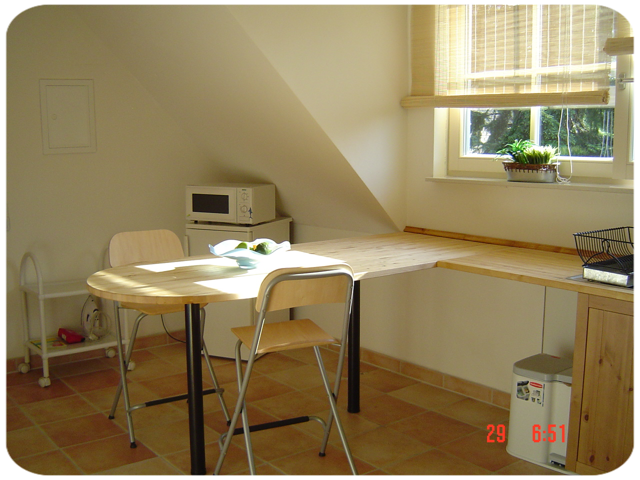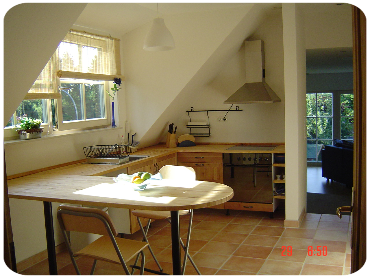 Haus Einfeld - im OG wurde 2005/06 komplett neu ausgebaut. Sie ist allergikerfreundlich eingerichtet, da z.B. die Bodenbeläge überwiegend aus Fliesen und Laminat bestehen. Allergikergeeignete Bettwäsche ist vorhanden. Für die extrem heißen Tage steht bei Bedarf eine mobile Klimaanlage zur Verfügung. Ausgerichtet ist die Ferienwohnung für 2 Personen. Da die Wohnlandschaft als weitere Schlafmöglichkeit dienen kann, können bis 4 Personen die Ferienwohnung nutzen. Weiter kann ein Schlafzimmer mit 2 Betten dazugebucht werden.