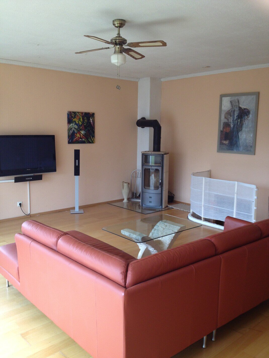 • Großes Wohnzimmer/Studio mit Wohnlandschaft/ Schlafsofa orange, LCD Fernseher/ SAT TV