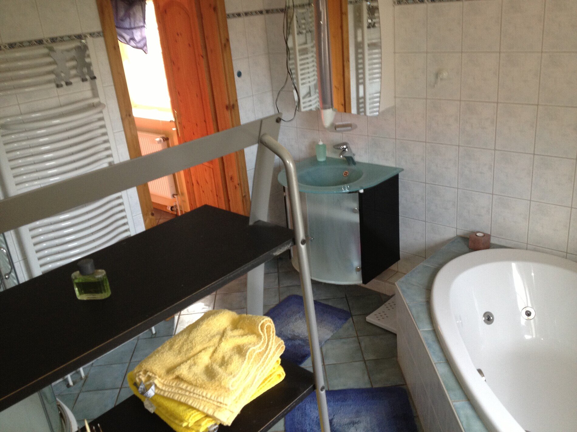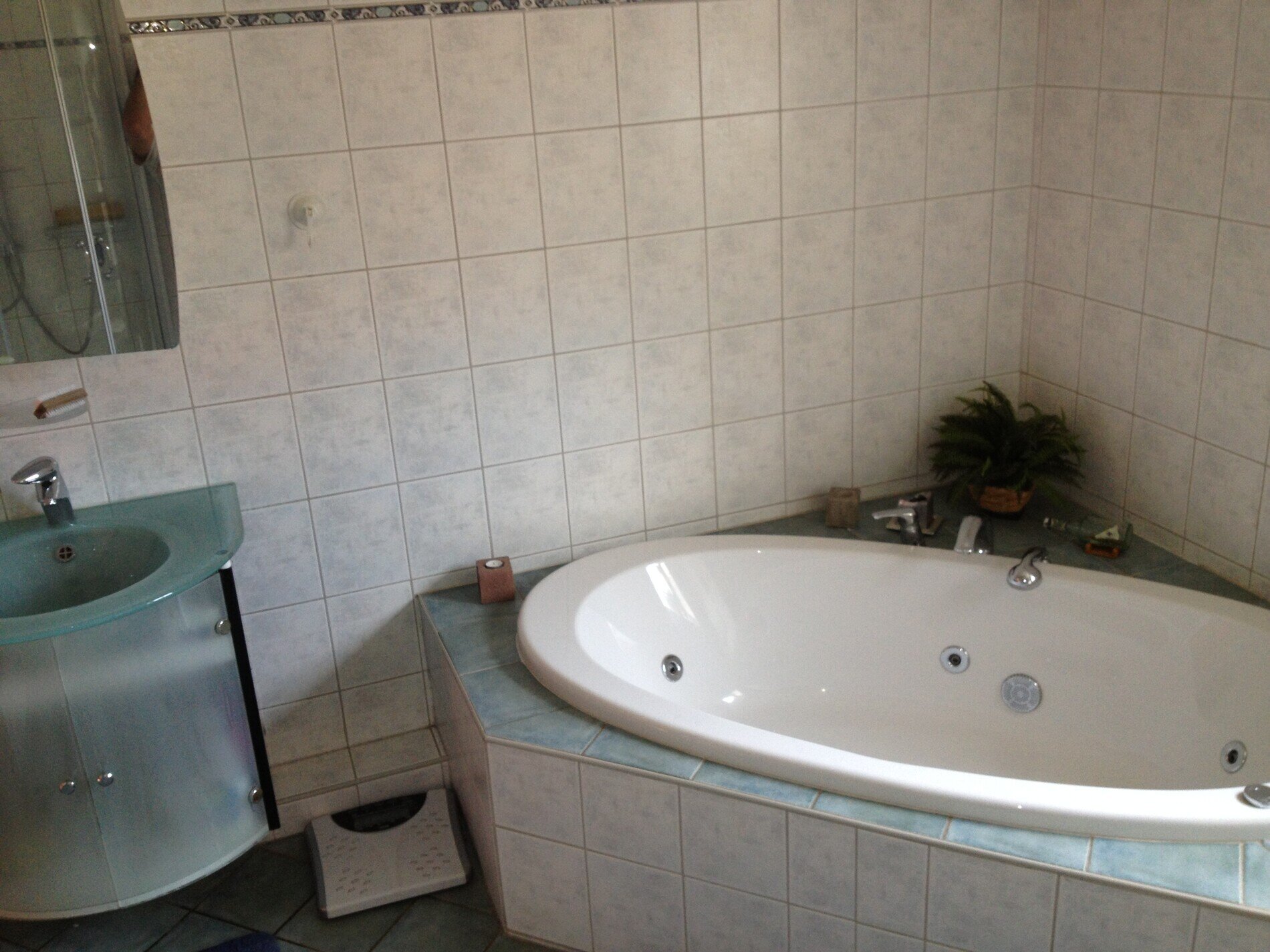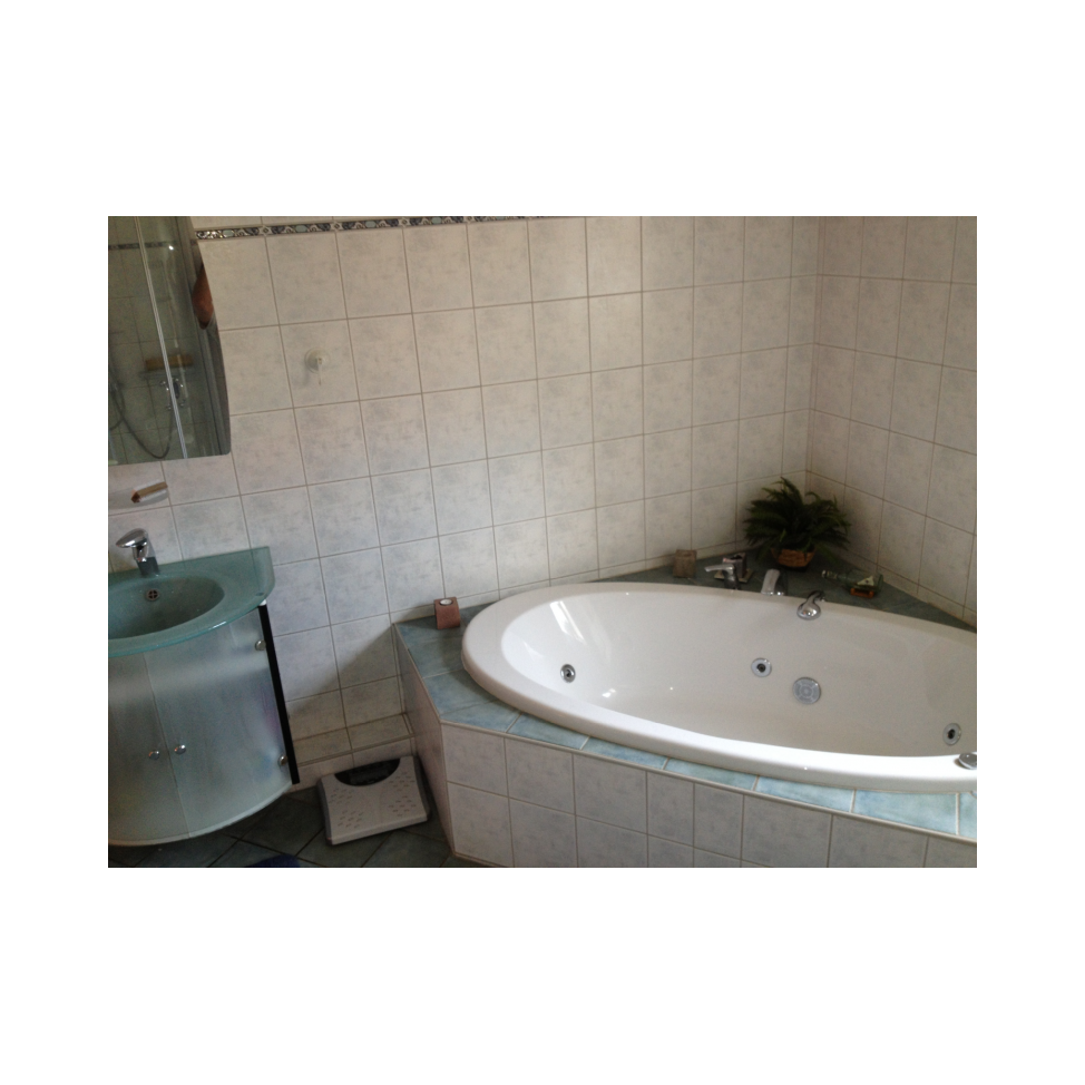- Bad mit Whirlpool, Dusche/Regendusche, WC, Waschtischanlage, Fön
